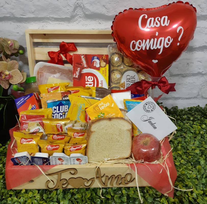CESTA DE CAFÉ CASA COMIGO?   BALÃO METALIZADO GRANDE CORAÇÃO EU TE AMO