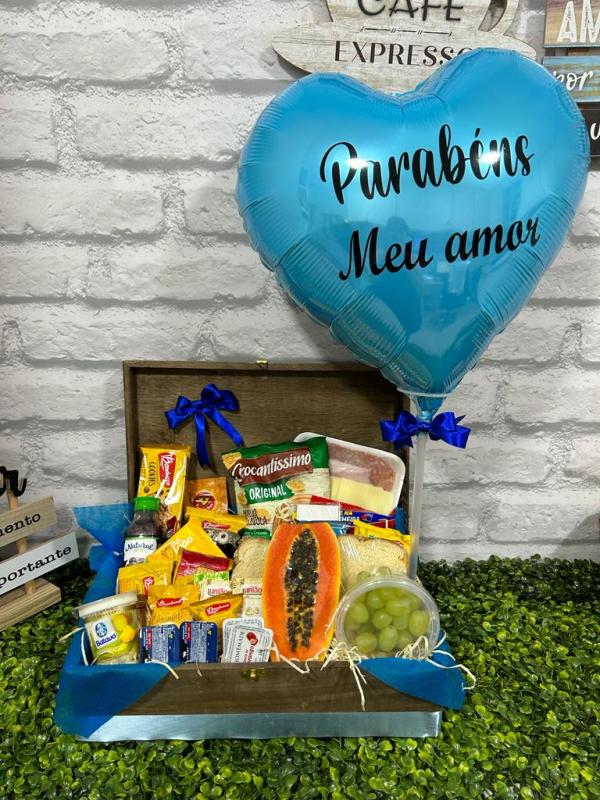 CESTA DE CAFÉ DA MANHÃ MEU AMOR COM BALÃO