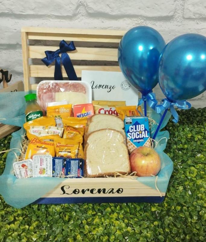 CESTAS DE CAFÉ DA MANHÃ BOMBOCADO PERSONALIZADA COM BALÕES