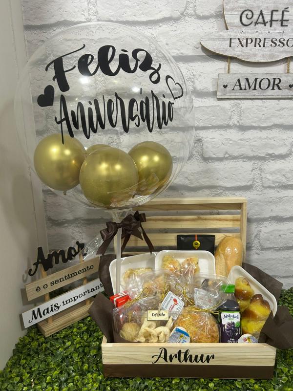 CESTA DE CAFÉ DA MANHÃ BELLA LUNA   CESTA DE CAFÉ DA MANHÃ BELO DIA COM BALÃO AZUL