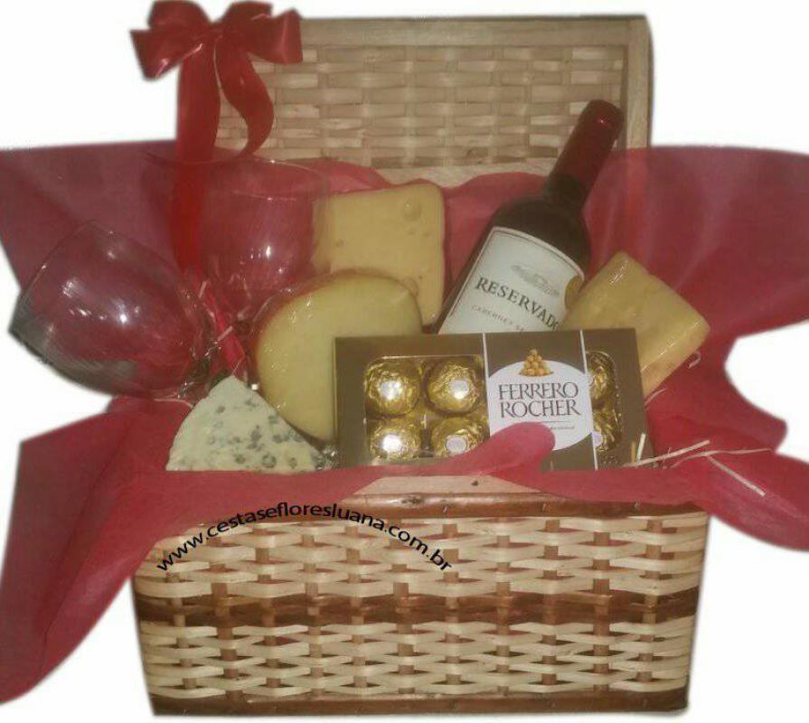 CESTAS DE QUEIJOS E VINHO E CHOCOLATE MISTURA PERFEITA