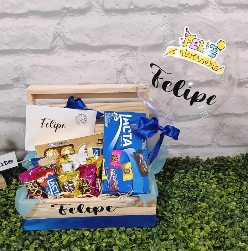 CESTA SABOROSOS CHOCOLATES COM BALÃO PERSONALIZADO