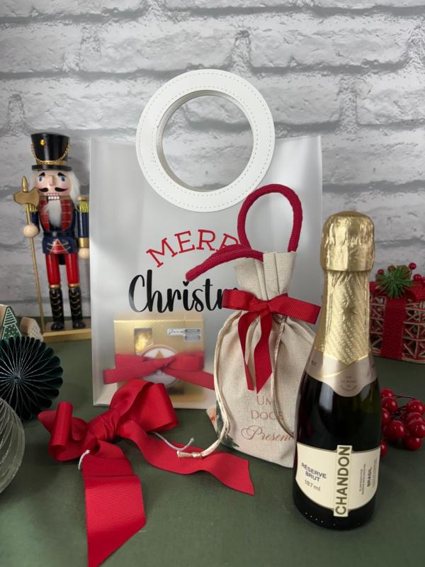 panetone ou chocotonne 80gr em linda sacolinha de tecido