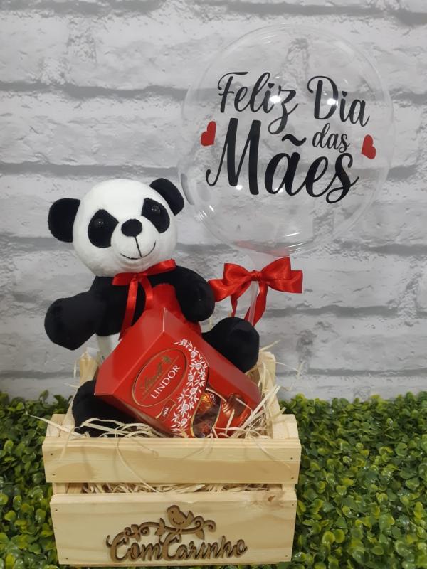 CESTA DE PRESENTE DE DIA DAS MÃES PANDA, LINDT E BALÃO