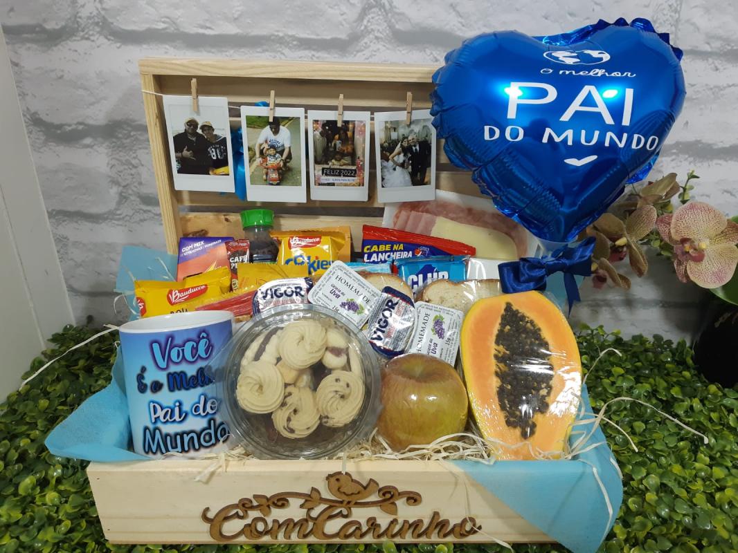 CESTA DE CAFÉ PAPAI É CAMPEÃO   BALÃO BUBBLE PEQUENO MELHOR PAI DO MUNDO