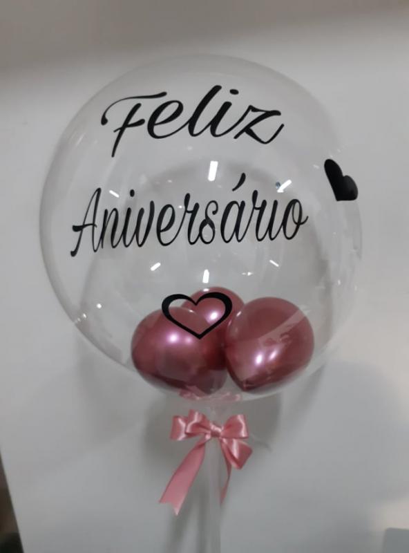 BALÃO BUBBLE MEDIO FELIZ ANIVERSARIO   CESTA DE ANIVERSARIO TUDO RADIANTE NESSE DIA