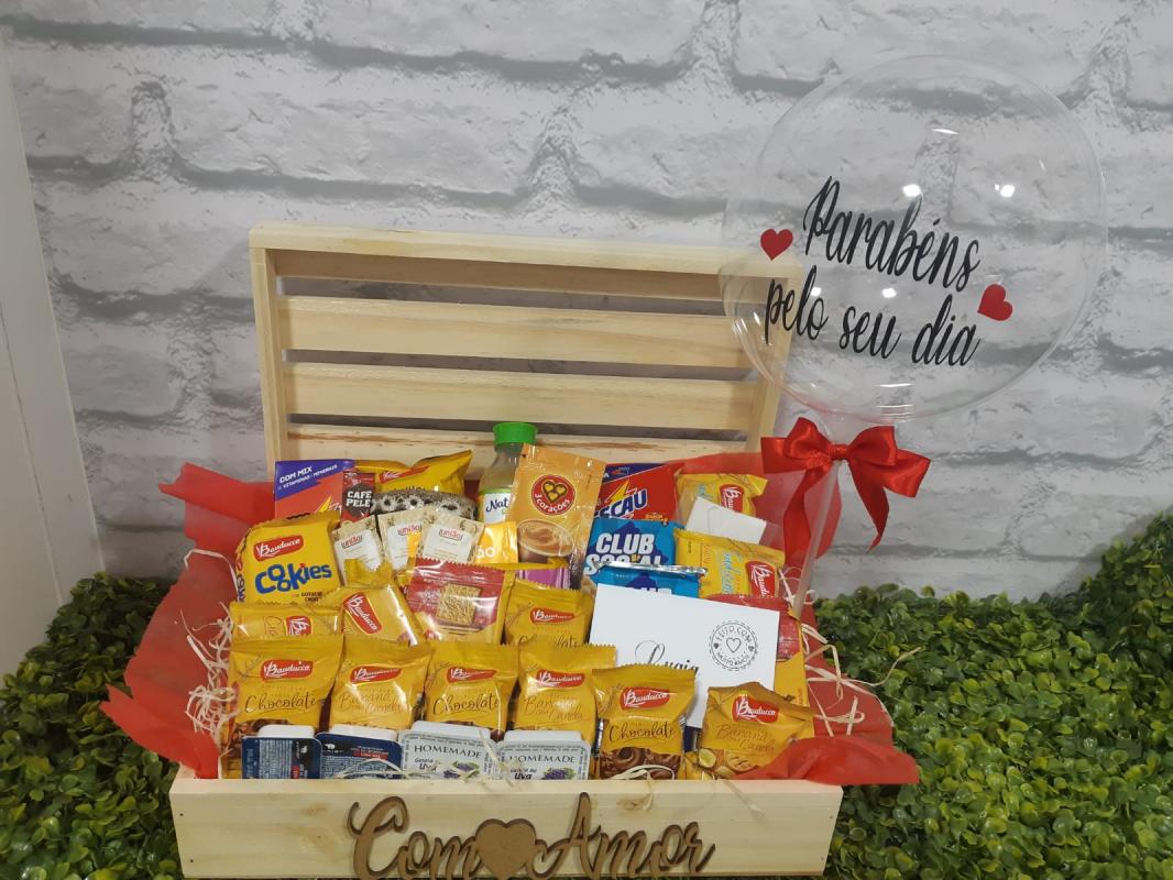 CESTA DE CAFÉ DA MANHÃ TRANSBORDANDO AMOR COM BALÃO