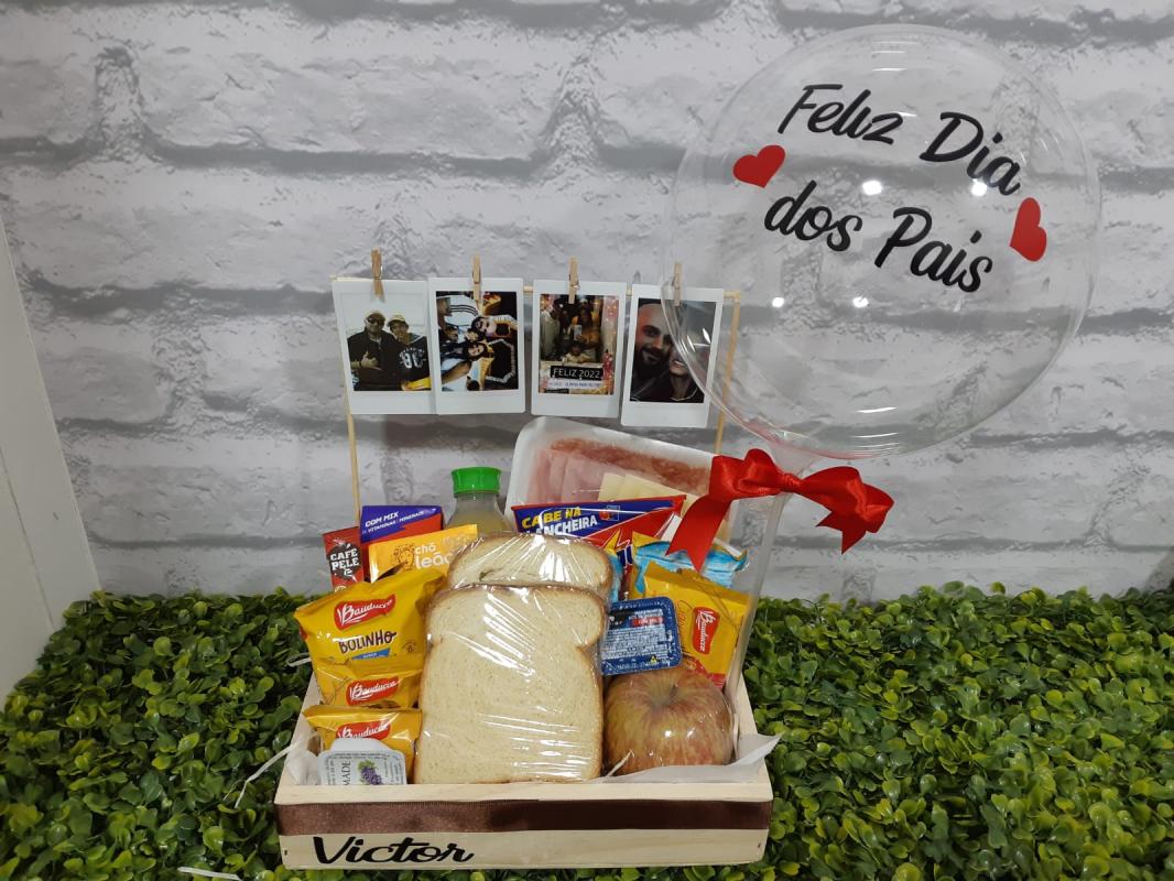 CESTA DE CAFÉ DA MANHÃ DIA DOS PAIS VARAL DE FOTOS   BALÃO BUBBLE PEQUENO EU TE AMO
