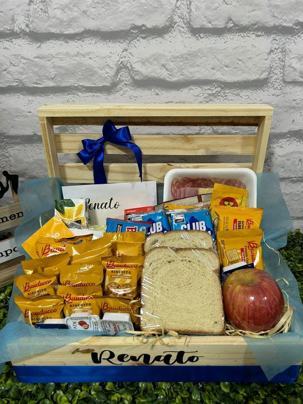 CESTA DE CAFÉ DA MANHÃ PENELOPE PERSONALIZADA   PAO DE LEITE