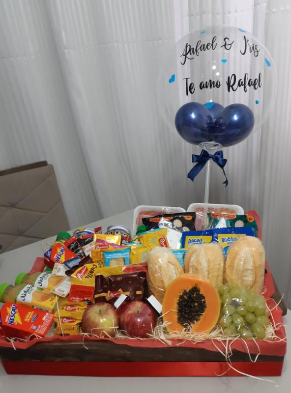 CESTA DE ANIVERSÁRIO DE CASAMENTO SUPER LUXO COM BALÃO   PEDAÇO QUEIJO PARA ADICIONAR A CESTA
