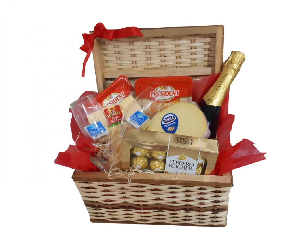 CESTA DE QUEIJOS ESPUMANTE QUEIJO E CHOCOLATE