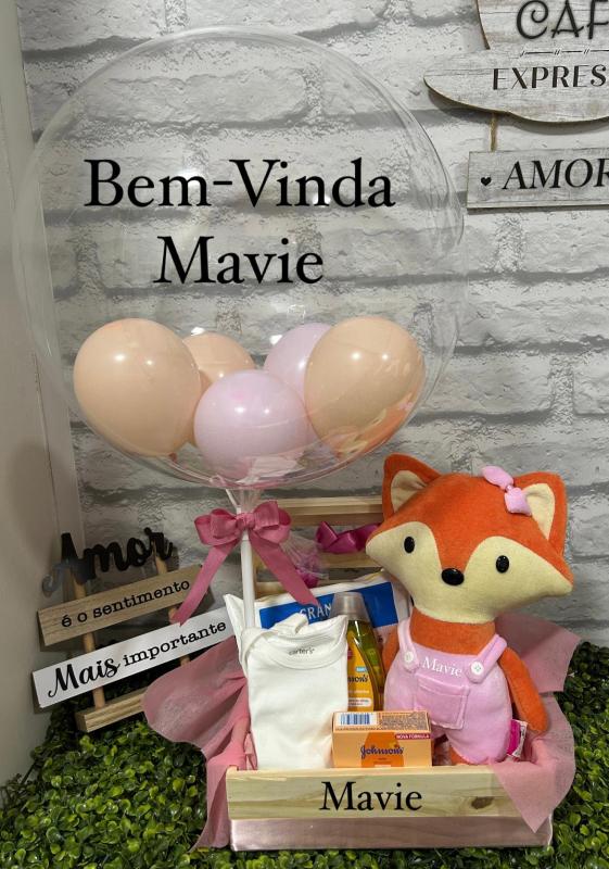 CESTA MATERNIDADE BEM-VINDA   BALÃO BUBBLE PEQUENO FELIZ DIA DAS MÃES