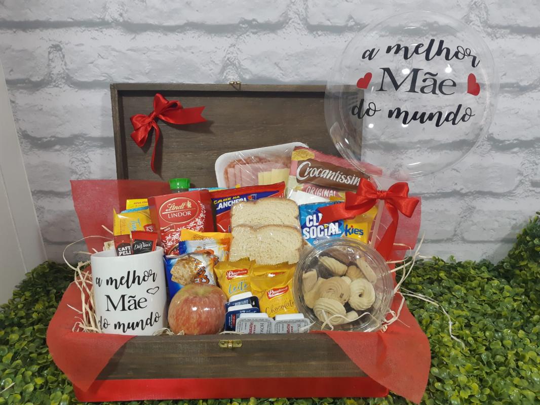 CESTA DE CAFÉ DE DIA DAS MÃES LINDO DIA COM CANECA E BALÃO   CESTA DE CAFÉ DA MANHÃ HOLANDA COM BALÃO PERSONALIZADO